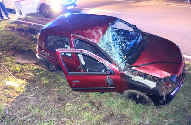 POL-PDKO: PKW überschlägt sich und landet im Straßengraben Beide Insassen wurden leicht verletzt