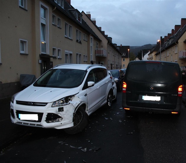 Bei einem Verkehrsunfall in den Morgenstunden des Freitag wurde eine Frau in Lahnstein leichtverletzt. Diese befand sich im Fahrzeug eines 66-jährigen, welcher mit seinem PKW den Steinkauterweg von der Sebastianusstraße kommend in Richtung Im Harlos befuhr. An der Kreuzung Im Harlos kam es zum Zusammenstoß mit einem 19-jährigen PKW-Fahrer, der in Richtung Südallee unterwegs war. Zwar vorfahrtsberechtigt, dürfte bei dem 66-jährigen jedoch auch die Geschwindigkeit einen Beitrag zum Unfall geleistet haben, da dieser im Anschluss drei weitere, am Straßenrand geparkte PKW beschädigte. Die verletzte Beifahrerin wurde in ein Krankenhaus eingeliefert.