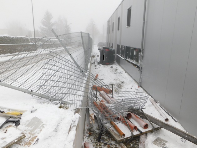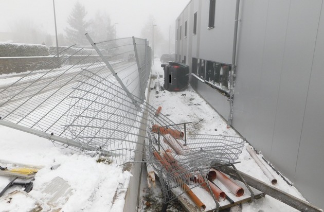 Am Montag, den 18.12.2017, gegen 10:18 Uhr, befuhr ein 43 jähriger Fahrer mit seinem PKW die K 90 von Dellhofen kommend in Fahrtrichtung Wiebelsheim. Am Ortseingang Perschdeid verlor er aufgrund schneeglatter Fahrbahn, Sommerbereifung, Nutzung seines Mobilfunktelefons und überhöhter Geschwindigkeit die Kontrolle über seinen PKW. Er kam nach rechts von der Fahrbahn ab, durchbrach einen Stahlzaun und beschädigte die Fassade des angrenzenden Firmengebäudes. Mit Glück wurde der Fahrer nur leicht verletzt. Sachschaden beträgt ca. 40.000EUR. Die Polizei Boppard bittet noch einmal eindringlich, die winterlichen Straßenverhältnisse nicht zu unterschätzen.