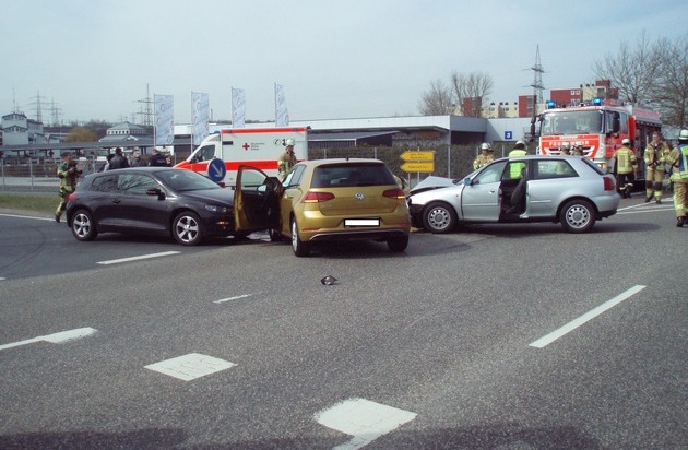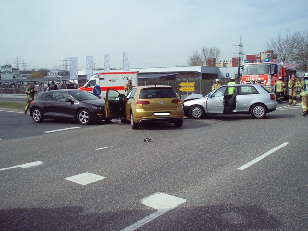 Am Karfreitag kam es gegen 12:30 Uhr zu einem Verkehrsunfall mit drei leicht verletzten Personen an der Einmündung L121/K96. Der Fahrer eines VW Golf kollidierte als Linksabbieger mit dem mit zwei Personen besetzten entgegen kommenden Audi. Durch die Kollision wurde der VW Golf auf einen weiteren an der Einmündung haltenden Pkw geschoben, an welchem nur leichter Sachschaden entstand. Die drei Insassen der beiden anderen Pkws wurden zur weiteren Untersuchung in umliegende Krankenhäuser verbracht. An den beiden Pkws entstand Totalschaden. Die Ermittlungen zum Unfallhergang dauern noch an. Neben dem DRK waren die Feuerwehr der VG Weißenthurm und die Straßenmeisterei Neuwied im Einsatz.