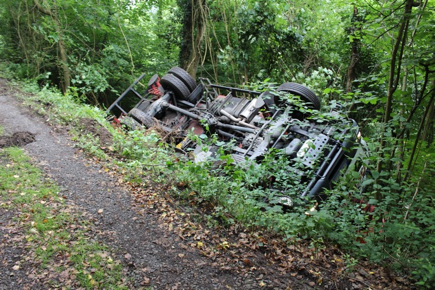 POL-PDKO: LKW kippt um und landet auf dem Dach