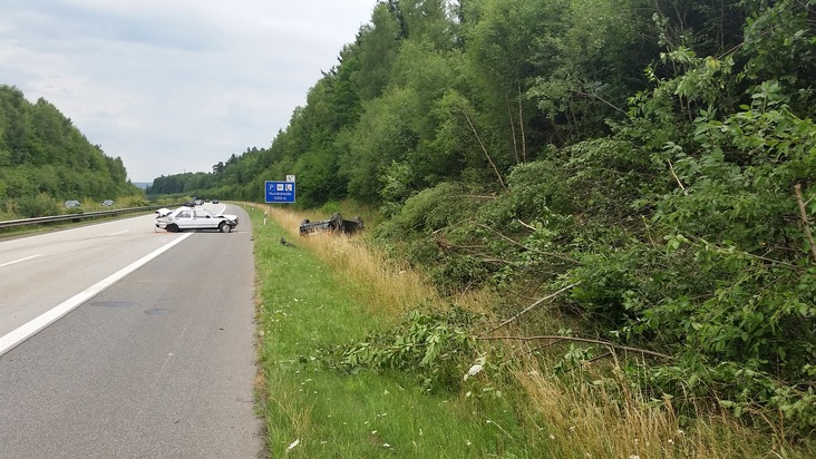 Am frühen Abend gegen 17:00 Uhr ereignete sich auf der BAB 61, FR Ludwigshafen, zwischen den Anschlussstellen Laudert und Rheinböllen ein Verkehrsunfall mit zwei beteiligten Fahrzeugen. Ein 23-jährige Pkw-Fahrer fuhr, den rechten von zwei Fahrstreifen befahrend, auf einen vorausfahrenden Pkw auf. In der Folge verloren beide Fahrzeugführer die Kontrolle über ihre Pkw, kollidierten mit der Schutzplanke bzw. wurden von der Fahrbahn auf den Grünstreifen abgewiesen. Der Pkw des Unfallverursachers überschlug sich hierbei. Beide Fahrzeuge waren nicht mehr fahrbereit und mussten abgeschleppt werden. Insgesamt wurden vier Personen verletzt und notärztlich versorgt. Die Ermittlungen zur Unfallursache dauern noch an. Während der Unfallaufnahme kam es zu ca. 3 Km Rückstau. Die Gesamtschadenshöhe beläuft sich auf schätzungsweise 18.000 Euro.