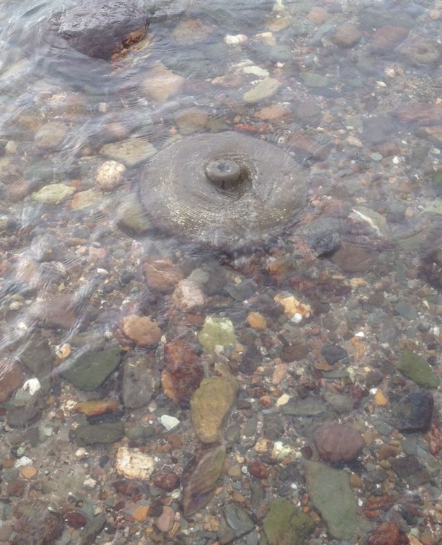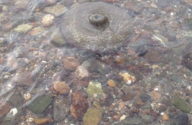 Den Fund einer Tellermine im Rhein, in Höhe des Lahnsteiner Viktoriabrunnes, meldete ein Spaziergänger heute Morgen, 17.11.2015, der Polizei in Lahnstein. Polizeiinspektion, Wasserschutzpolizei und Kampfmittelräumdienst, die sich das vermeintliche Gefahrenobjekt aus der Nähe ansahen, konnten schnell Entwarnung geben. Es handelte sich glücklicherweise nicht um einen gefährlichen Gegenstand, sondern um den Betonfuß eines Sonnenschirmes. Im Wasser und auf die Entfernung hin absolut mit einer Mine zu verwechseln.