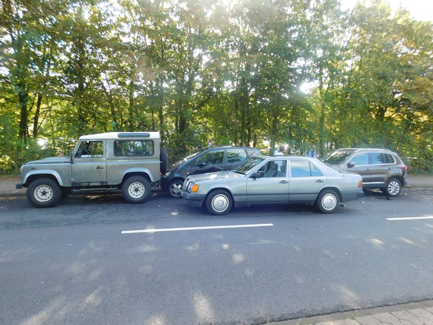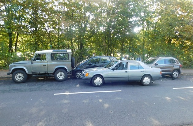 Vier beschädigte Fahrzeuge, rund 20.000 Euro Sachschaden, ist die Bilanz eines Verkehrsunfalls, der sich am Montag, 26.09.2016, um 10.25 Uhr in der Beatusstraße in Koblenz ereignete. Der 20-jährige Fahrer eines Pkw Daimler-Benz bog von einem Parkplatz (in Höhe der Beatusstraße 145) nach rechts in die Beatusstraße ein. Unmittelbar nach dem Abbiegen verlor er die Kontrolle über sein Fahrzeug. Laut eigenen Angaben geriet er auf die Gegenfahrbahn, wo er einem entgegenkommenden roten Kleinwagen ausweichen musste. Nun verwechselte er Bremse und Gas, zog seinen Pkw nach rechts, und schob dort drei ordnungsgemäß geparkte Fahrzeuge ineinander. Drei der Fahrzeuge waren anschließend nicht mehr fahrbereit und mussten abgeschleppt werden. Bei der Unfallaufnahme stellte sich heraus, dass der Verursacher unter Drogeneinfluss stand, was eine Blutentnahme, Sicherstellung des Führerscheins und ein entsprechendes Strafverfahren zur Folge hatte. Zeugen des Unfalls, insbesondere der Fahrer/Fahrerin des roten Kleinwagens werden gebeten, sich mit der Polizei Koblenz, Telefon: 0261-1030, in Verbindung zu setzen.