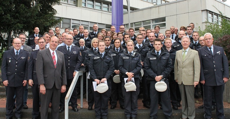 Am 6. Oktober 2016 haben 49 Beamtinnen und Beamte ihren Dienst bei den Dienststellen des Polizeipräsidiums Koblenz aufgenommen. Polizeipräsident Wolfgang Fromm begrüßte die neuen Mitarbeiterinnen und Mitarbeiter am 07.10.2016 offiziell im "Haupthaus" seiner Behörde.