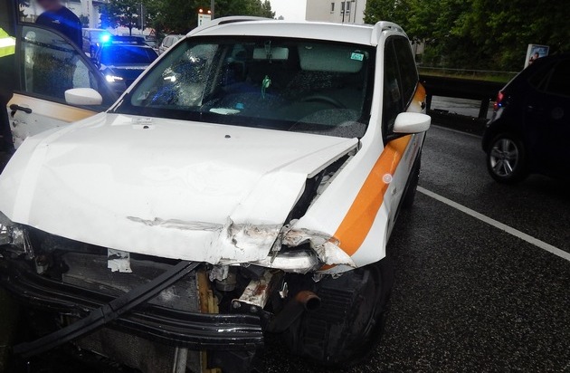 Im dortigen Tieftrog stieß der Fiat zunächst gegen den linken Bordstein und die Leitplanke, schleuderte zurück und kam quer auf der rechten Fahrbahn zum Stehen. Die Berufsfeuerwehr musste ausgelaufenes Öl und Benzin entfernen und der schwer beschädigte Pkw abgeschleppt werden.