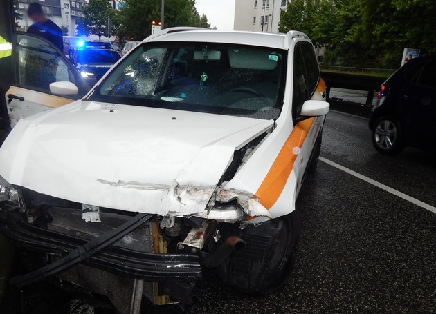 Im dortigen Tieftrog stieß der Fiat zunächst gegen den linken Bordstein und die Leitplanke, schleuderte zurück und kam quer auf der rechten Fahrbahn zum Stehen. Die Berufsfeuerwehr musste ausgelaufenes Öl und Benzin entfernen und der schwer beschädigte Pkw abgeschleppt werden.