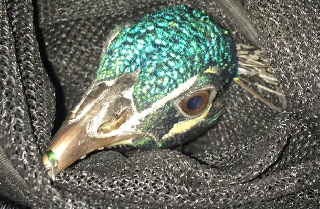 Am 12.11.2017, gegen 12 Uhr meldete eine Anwohnerin in Metternich, dass sich ein Pfau in ihren Garten verirrt hätte. Das Tier sei vorher schon durch das Wohngebiet gelaufen. Da die Örtlichkeit in Nähe einer vielbefahrenen Straße lag, wurde der Pfau mittels einem geliehenen Netz und der Mithilfe der Anwohner eingefangen. Anschließend ging es, gut gesichert in einer Einsatztasche, per Streifenwagen zum Zoo Neuwied. Dort wurde das Tier nach vorheriger Absprache - vorerst in Quarantäne - untergebracht. Sofern sich kein Eigentümer meldet, wird der "bunte Vogel" wohl in die Zoofamilie aufgenommen.