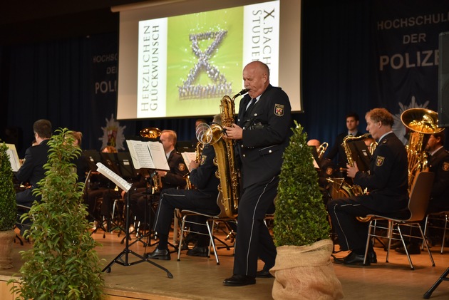 Friedel Durben stellte den 10. Bachelorstudiengang als einen sehr angenehmen und motivierten Jahrgang vor und erinnerte insbesondere an das große soziale Engagement, als 200 Flüchtlinge in der Sporthalle am Campus untergebracht wurden sowie die zahlreichen Spendenaktionen. Auch der erstmals vom Freundeskreis der Hochschule ausgelobte Hochschulpreis ging an eine Studierende des 10. Studiengangs. Polizeikommissarin Pia Magdeburg erhielt die Auszeichnung für ihre Bachelorarbeit zum Thema "Polizei und Bürger" anlässlich des Festaktes zu den Feierlichkeiten "20 Jahre Hahn" am 18. September 2016. "Der Polizeiberuf ist kein Beruf wie jeder andere. Er fordert den ganzen Menschen mit Herz, Verstand, Geduld und Gelassenheit. Sie begegnen dem Leben in allen Facetten - dem Schmerz, der Wut, der Verzweiflung, der Angst, aber auch der Dankbarkeit, der Anerkennung und der Freude. Das ist fordernd und bereichernd zugleich. Wir haben Sie hierauf drei Jahre vorbereitet, zeigen Sie nun was Sie können", wünschte Friedel Durben dem polizeilichen Nachwuchs alles Gute für die Zukunft. Als Jahrgangsbester mit der Note gut (13,49 Punkte) erhielt Eva Eichenlaub vom Polizeipräsidium Rheinpfalz dann als Erste die lang ersehnten Urkunden aus den Händen des Staatsministers. Zu den ersten Gratulanten zählte Polizeipräsident Thomas Ebling, der seiner künftigen Mitarbeiterin viel Erfolg für ihre zukünftigen Aufgaben wünschte. In der Gesamtschau aller Prüfungen haben 52 Studierende mit der Note "gut", 108 Studierende mit der Note "befriedigend" und acht Studierende mit der Note "ausreichend", abgeschlossen. Der Durchschnittswert lag bei 9,85 Punkten. Für seine besonderen Leistungen bei der Erstellung der Bachelorarbeit zum Thema "Präventive eingriffsrechtliche Möglichkeiten und Grenzen des Betretens und Durchsuchens von Wohnungen bei Ruhestörungen" wurde Andris Rodewald vom Polizeipräsidium Rheinpfalz mit einem Sonderpreis ausgezeichnet. Mit "Unchain my Heart" gratulierte im Anschluss das Landespolizeiorchester Rheinland-Pfalz auf seine ganz besondere Weise und sorgte für die richtige Stimmung in der vollbesetzten Hochwaldhalle. Mit dem Preis für Campuskultur, der zweimal jährlich verliehen wird, will der Freundeskreis der Hochschule das ehrenamtliche Engagement würdigen und zugleich fördern. Als Vorsitzender des Freundeskreises freute sich der Leitende Kriminaldirektor a.D., Ernfried Groh, ganz besonders, den Preis in diesem Jahr die Gruppe verleihen zu dürfen, die sich in besonderem Maße für die Unterstützung der Flüchtlinge eingesetzt hat. In ihren Ansprachen ließen dann Polizeirätin Stephanie Loch und die beiden Polizeikommissare Roland Höhn und Jörn van de Kerkhof ihre Gedanken an ihre Studienjahre noch einmal Revue passieren und erinnerten in einem bebilderten Rückblick nochmal an die Zeit am Campus Hahn und der Deutschen Hochschule der Polizei, in der man nicht nur Kolleginnen und Kollegen kennengelernt, sondern auch viele neue Freunde gefunden hat. "Wir haben viele Herausforderungen und Prüfungen bestanden und auch einige Lehren gezogen. Es konnten viele Freundschaften geknüpft und tolle Momente miteinander verbracht werden, sodass wir sowohl traurig zurückblicken, aber auch erwartungsvoll auf unseren weiteren Weg schauen können", zieht Roland Höhn ein treffendes Fazit. Nach den berufsbegleitenden Wünschen von Pastoralreferent Hubertus Kesselheim und der Nationalhymne, gespielt vom Landespolizeiorchester Rheinland-Pfalz, ging es dann nahtlos in den gemütlichen Teil über, an dem die Gäste der Feierstunde mit den Hauptpersonen des Tages das Glas erheben durften.