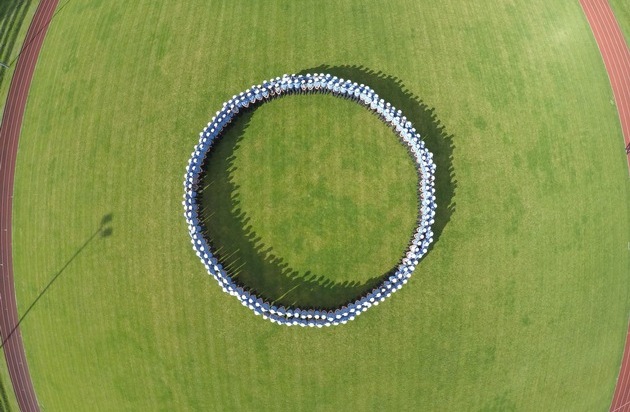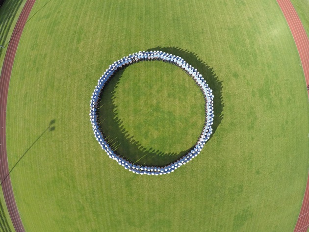 216 Studierende des 17. Bachelorstudiengangs Polizeidienst an der Hochschule der Polizei Rheinland-Pfalz haben den wohl größten lebenden 'WEISSEN RING' geformt. Für die Aktion trafen sich die Studierenden auf dem Sportplatz des Polizeicampus am rheinland-pfälzischen Flughafen Hahn. Das Ergebnis wurde mit einem Foto aus der Luft festgehalten.
