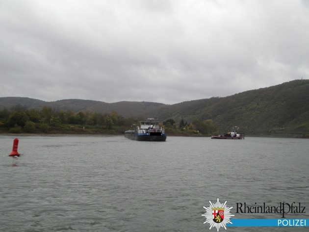 PP-ELT: Festfahrung eines Tankmotorschiffes auf dem Rhein in Höhe Ortslage Osterspai