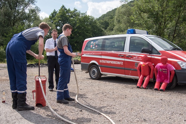 Am Samstag, dem 09.07. fand bei sommerlichen Temperaturen die Gemeinschaftsübung der Jugendfeuerwehr der Feuerwehr Lennestadt auf dem Gelände des ehemaligen Sägewerks Patt in Maumke statt. Hierzu hatten sich die Ausbilder der Jugendfeuerwehr einiges einfallen lassen und ein breites Einsatzspektrum der Feuerwehr in Form von Übungslagen ausgearbeitet. Brandbekämpfung und technische Hilfeleistung mit Menschenrettung, Betreuung von Verletzten, eine Wasserversorgung über eine längere Wegstrecke und einen Gefahrguteinsatz mussten die Kamerdinnen und Kameraden der Jugendfeuerwehr bewältigen. Bürgermeister Stefan Hundt, Beigeordneter Karsten Schürheck, die Leitung der Feuerwehr Lennestadt, Gruppen und Zugführer, Funktionsträger und einige Zuschauer schauten den Jugendlichen dabei über die Schulter und konnten sich vom Leistungsstand der Jugendfeuerwehr überzeugen, die mit voller Elan und Spaß ihre Aufgaben erfolgreich meisterten. Nach der Übung wurde dann noch ein Geheimnis gelüftet. Für die Jugendfeuerwehr wurden eigens 2 Übungspuppen angeschafft, damit die Jugendlichen bei ihren Übungen nicht immer selbst als Verletzte und Opfer herhalten müssen. Um diesen beiden Puppen, eine männliche und ein weibliche, auch einen Namen zu geben, sollten sich die Jugendlichen im Vorfeld Gedanken machen und Vorschläge einreichen. Gewonnen haben schließlich die beiden Vorschläge "Edeltraud" und "Flori" und die beiden neuen Mitglieder wurden auch gleich an Ort und Stelle durch zwei Kameraden getauft. Die beiden Namensgeber erhielten als Belohnung Gutscheine fürs Schwimmbad. Zum Abschluss wurde noch, wie es sich gehört, zusammen gegrillt und die Übung bei Kaltgetränken nachbesprochen.