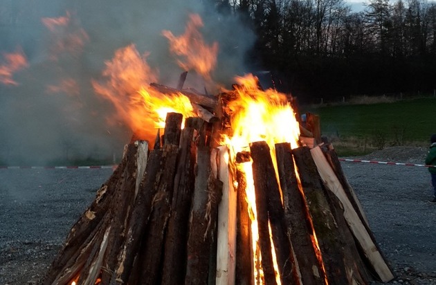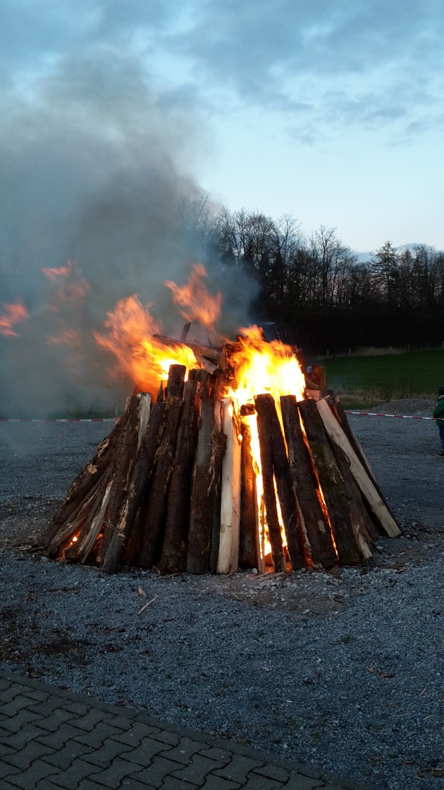 Der Löschzug Buke richtet am Ostersonntag, den 16. April 2017 das traditionelle Osterfeuer in Buke aus. Der Abend beginnt mit einer Andacht in der Buker Pfarrkirche um 18:30 Uhr. Anschließend wird das Osterfeuer auf dem Schützenplatz entzündet. Der Löschzug Buke lädt alle Bürgerinnen und Bürger ein, bei Bratwurst und Getränken ein paar gesellige Stunden zu verbringen. "In diesem Zusammenhang weisen wir ausdrücklich darauf hin, dass in diesem Jahr kein Grünschnitt oder gefällte Bäume für das Osterfeuer angeliefert werden können", erklärt Löschzugführer Mark Nigriny.