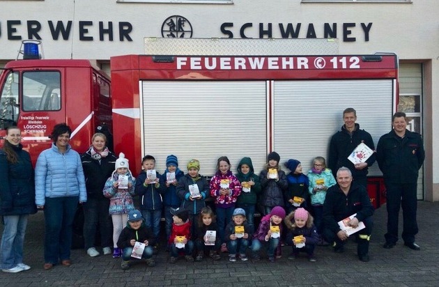 Feuer hat auf uns eine faszinierende Wirkung. Doch immer wieder führen der achtlose und ungeschulte Umgang zu Brandopfern und Sachschäden in Millionenhöhe. Aus diesem Grund üben schon die Kleinen mit der Feuerwehr. Speziell ausgebildete Erzieherinnen und die Brandschutzexperten Matthias Dunsche und Andreas Benstein vom Löschzug Schwaney haben zwei Tage spielerisch gezeigt, wie man sich in Gefahrensituationen am besten verhalten soll.
