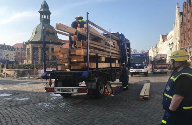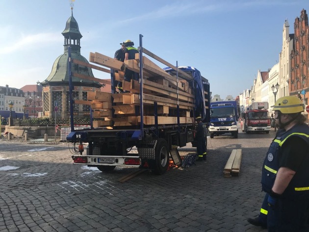 THW-HH MV SH: Abstützeinsatz nach Brand in Wismarer Altstatdt