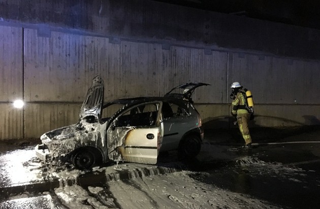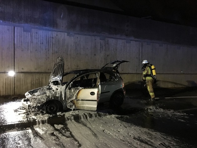 Am späten Mittwochnachmittag wurde die Feuerwehr Lohmar zu einem PKW-Brand auf der Hauptstraße unter der Brücke der BAB 3 gerufen. Als die ersten Einsatzkräfte vor Ort eintrafen, brannte das Fahrzeug in voller Ausdehnung. Dichter Rauch quoll unter der Brücke hervor. Umgehend ging ein Trupp unter Atemschutz zu dem PKW vor und begann mit den Löschmaßnahmen. Aufgrund der starken Rauchentwicklung sperrten Polizei und Feuerwehr beide Fahrspuren in Richtung Siegburg und leiteten den Verkehr in Richtung Lohmar auf die BAB 3 ab. Für Unverständnis bei den Einsatzkräften sorgte das Verhalten mehrerer PKW- und Fahrradfahrer, die trotz Rauchentwicklung und der Absperrung versuchten durch die Einsatzstelle zu fahren. Daher eine Bitte: Achten Sie auf Absperrungen und auf Einsatzkräfte, wenn Sie an Einsatzstellen vorbei fahren.