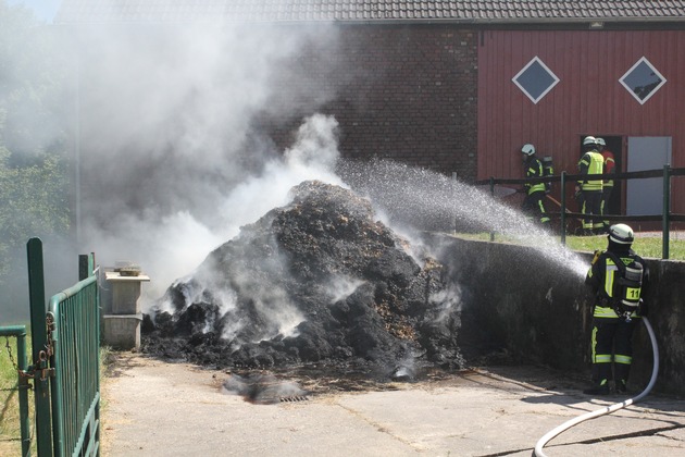 Für die Feuerwehr Mettmann begann die neue Woche am Sonntag um 14:49 Uhr mit einer Alarmierung unter dem Alarmstichwort "Gehöft" in die ländlich geprägte Peripherie der Kreisstadt. Nach Eintreffen der ersten Kräfte stellte sich heraus, dass ein direkt an eine Scheune angrenzender Misthaufen brannte. Während der Angriffstrupp unter Atemschutz zur Brandbekämpfung vorging, wurde über den Tank des Tanklöschfahrzeugs und einer Wasserentnahme aus dem vorhandenen Löschwasserteich die Löschwasserversorgung sichergestellt. Das Feuer konnte dadurch schnell unter Kontrolle gebracht werden. Mit Hilfe eines Radladers des Hofbesitzers wurde der Misthaufen anschließend auseinander gezogen, um die Nachlöscharbeiten der Feuerwehr zu unterstützen. Im Einsatz waren hier 35 Kräfte mit 10 Fahrzeugen.