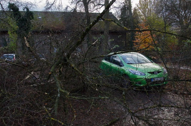 Zu mehreren kleineren Einsätzen wurde die Feuerwehr Menden am Sonntag alarmiert. Zunächst geriet gegen 8 Uhr ein Papiercontainer am Hünenköpfchen in Brand. Die Besatzung des Löschfahrzeugs der Feuerwache hatte den Brand schnell unter Kontrolle. Um 10:34 Uhr wurde dann der Rüstwagen alarmiert, weil im Bereich der Unnaer Landstraße / Provinzialstraße ein größerer Ast auf der Straße gemeldet wurde. Auch der folgende Einsatz ging auf das Konto von Sturmtief Nannette: Auf einem Parkplatz an der Fischkuhle stürzte ein Baum um und traf einen hier abgestellten PKW. Glücklicherweise befanden sich keine Personen im Fahrzeug oder der unmittelbaren Umgebung, allerdings erlitt der grüne Kleinwagen einen beträchtlichen Heckschaden. Mittels einer Kettensäge zerkleinerten die Einsatzkräfte den Baum und räumten die Einsatzstelle frei. Besondere Aufmerksamkeit galt hierbei den in der Nähe abgestellten Fahrzeugen, um weiteren Sachschaden zu verhindern. Noch während des Einsatzes an der Fischkuhle wurde über die Einsatzzentrale der Feuerwehr Hemer eine Ölspur im Bereich der Iserlohner Landstraße gemeldet. Auf einer längeren Strecke waren vereinzelte Kraftstoffspuren zu erkennen. Die weitere Erkundung ergab, dass weder eine Gefährdung für die Umwelt, noch für die Verkehrsteilnehmer bestand. Nach Rücksprache mit der Polizei wurden lediglich Hinweisschilder aufgestellt.