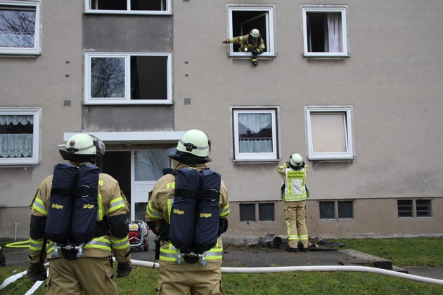 Bei Eintreffen der Rettungskräfte der Feuer- und Rettungswache und des Löschzuges Menden-Mitte stieg dunkler Rauch aus mehreren Fenstern des Gebäudes. Zwei Angriffstrupps gingen sofort unter schwerem Atemschutz in das Gebäude vor, konnten mit ihren Löschmaßnahmen eine Ausbreitung auf das Treppenhaus und weitere Wohnungen verhindern und den Brand schnell löschen. Da sich der Rauch aber bereits in weitere Wohnungen ausgebreitet hatte, wurden auch diese durchsucht und anschließend ausgiebig belüftet. Der Rettungsdienst kümmerte sich währenddessen um drei Bewohner, die sich zusammen mit einem Hund aus dem Haus gerettet hatten und nicht in ihre Wohnungen zurückkehren konnten.