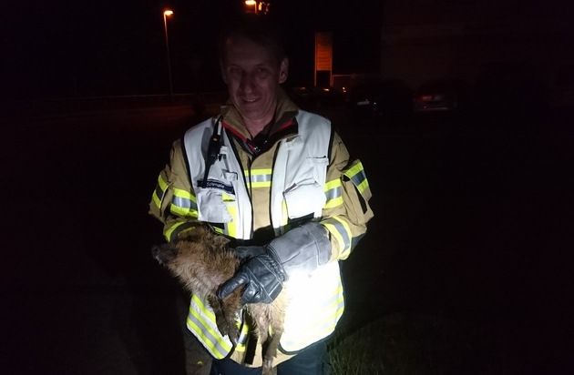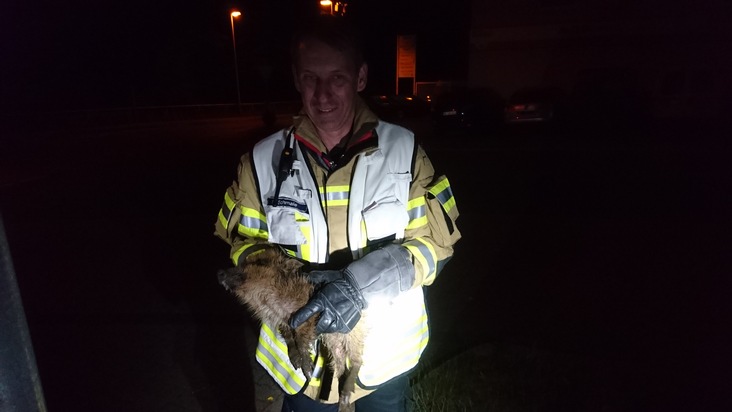In der Nacht von Sonntag auf Montag erhielt die Feuerwehr Menden einen ungewöhnlichen Notruf: Laut Anrufer habe sich im Bereich Obere Promenade eine Wildschweinrotte in der Hönne verirrt und fände nicht mehr selbstständig heraus. Die Feuerwehr rückte daraufhin mit einem Löschfahrzeug aus und erkundete zunächst die Lage vor Ort. Wie sich schnell herausstellte, hatte die Rotte bereits seinen Weg fortgesetzt, allerdings war ein Frischling alleine zurückgeblieben. Die Einsatzkräfte fingen das hilflose Tier ein und übergaben es dem Bereitschaftsdienst der Mendener Tierhilfe.