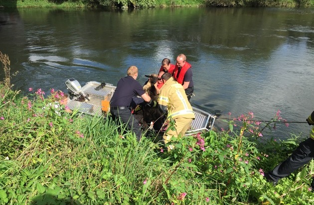 Tierischer Einsatz für die Feuerwehr Menden am Sonntagmittag: Ein Schaf befand sich in Höhe des Wasserwerkes an der Fröndenberger Straße in der Ruhr. Genauer gesagt stand es auf einer leichten Erhöhung mitten im Flusslauf und konnte sich selber nicht mehr aus dieser misslichen Lage befreien. Die Einsatzkräfte der Mendener Feuerwehr ließen ein Boot zu Wasser und konnten das Tier bereits nach kurzer Zeit einfangen. Die Überfahrt zurück an das Ufer überstand das Schaf tapfer und konnte an Land wohlbehalten an den zuständigen Schäfer übergeben werden. Nach knapp 20 Minuten konnten die 15 Einsatzkräfte des Löschzuges Menden-Mitte und des Rüstzuges der Feuer- und Rettungswache wieder einrücken.