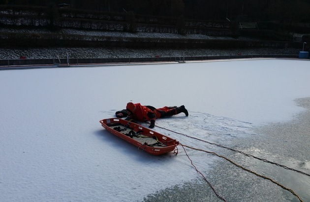 FW Menden: Eisrettungsübung im Bürgerbad Leitmecke