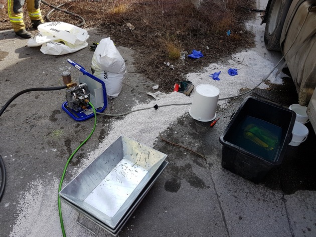Die Einsatzkräfte der Feuerwehr setzten zunächst Wannen ein, um den auslaufenden Kraftstoff aufzufangen. Mittels flexibler Dichtmasse konnte das Leck provisorisch abgedichtet werden. Zeitgleich wurde eine spezielle Pumpe betriebsbereit gemacht, welche den Tankinhalt in einen mobilen Transportcontainer umpumpte. Einen größeren Umweltschaden konnten die acht Einsatzkräfte der Feuerwache Menden so abwenden. Während des eineinhalbstündigen Einsatzes stellte die Feuerwehr zudem den Brandschutz sicher.