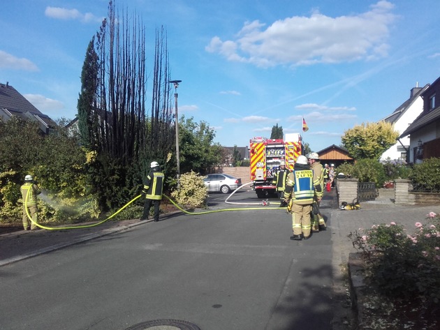 Am Samstagabend geriet in Halingen eine Koniferen-Hecke in Brand, auf Grund der Trockenheit breitete sich das Feuer schnell aus. Ein in der Nähe abgestellter PKW und eine Straßenlaterne wurden durch die Hitzeeinwirkung beschädigt. Zufällig vorbeikommende Jugendliche griffen beherzt ein und konnten mit einem Feuerlöscher die Ausbreitung auf eine Garage verhindern. Die Löschgruppe Halingen der Freiwilligen Feuerwehr traf bereits nach wenigen Minuten am Einsatzort im Waldweg ein und konnte das Feuer schnell unter Kontrolle bringen.