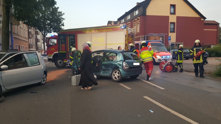 Zu einem Verkehrsunfall mit insgesamt drei verletzten Personen kam es auf der Bochumer Straße in Recklinghausen-Süd am Mittwochmorgen (30.08.2017).