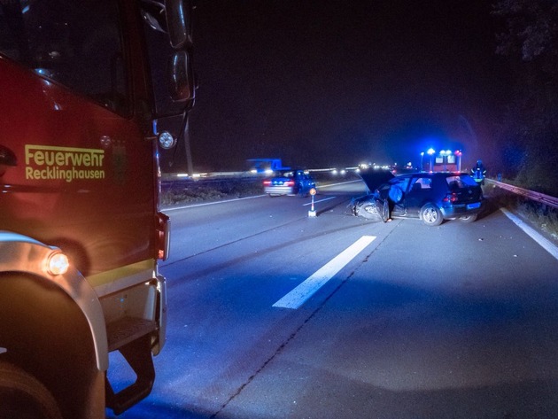 Die Feuerwehr Recklinghausen wurde um 05.45 Uhr auf die BAB 43 in Fahrtrichtung Münster zwischen dem Autobahnkreuz Recklinghausen und der Abfahrt Marl-Sinsen alarmiert.