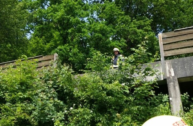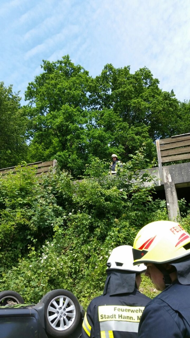 HANN. MÜNDEN (jk) - Im Eichenweg in Hann. Münden (Landkreis Göttingen) ist am Freitagvormittag (02.06.17) eine 81 Jahre alte Autofahrerin mit ihrem PKW einen ca. sechs bis sieben Meter tiefen Abhang hinuntergestürzt und anschließend auf dem Dach gelandet. Der spektakuläre Unfall ereignete sich gegen 11.15 Uhr.