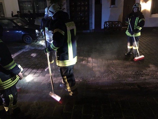 Der Löschzug Lügde wurde mit dem Alarmstichwort "Technische Hilfe - Ölschaden" alarmiert. Noch während des Einsatzes "BMA Sonderobjekt" in der Vorderen Straße bekamen die Einsatzkräfte durch die Leitstelle einen Folgeeinsatz mit dem Stichwort "Ölschaden nach VU. Ein PKW war gegen eine Verkehrsinsel gefahren und hatte durch die Beschädigung der Fahrzeugfront Betriebsstoffe verloren. Die Einsatzkräfte sicherten die Einsatzstelle ab und banden das ausgetretene Öl mit speziellen Bindemittel. Anschließend wurde das Bindemittel wieder aufgenommen und einer fachgerechten Entsorgung zugeführt.