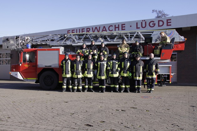 Unter der Leitung von Klaus Thrien (Feuerwehr Paderborn) absolvierten in den letzten Wochen 12 Kameraden der Feuerwehr Lügde sowie 2 Kameraden der Feuerwehr Paderborn einen Drehleitermaschinisten - Lehrgang in Lügde. Der Einsatz einer Drehleiter kann immer nur so gut ablaufen, wie das eingesetzte Personal in der Bedienung geschult ist. Die erstmalige Beschaffung einer Drehleiter für die Feuerwehr Lügde im Oktober erforderte daher auch die Ausbildung von Einsatzkräften auf diesem komplexen Einsatzfahrzeug. Neben der taktischen Ausbildung, wo die Einsätze und Einsatzabläufe an Modellen simuliert und geschult wurden, lag der Lehrgangschwerpunkt auf der praktischen Ausbildung im Stadtgebiet Lügde. Die Standortbestimmung der Drehleiter zum Anleitern gehörte zu den wichtigsten Bestandteilen der praktischen Ausbildung, denn dieser kann im Einsatzfall über Leben und Tod entscheiden. Das Umsetzen einer falsch platzierten Drehleiter kostet Zeit, welche im Einsatzfall sehr kostbar ist. Weitere praktische Ausbildungseinheiten waren die Menschenrettung über die Schleifkorbtrage, die Brandbekämpfung mit Wasserabgabe, die Nutzung der Drehleiter als Angriffsweg sowie der Einsatz als Hebemittel. Die Kameraden legten zum Abschluss des Lehrgangs erfolgreich eine Prüfung ab und sind somit die ersten ausgebildeten Drehleitermaschinisten der Feuerwehr Lügde.