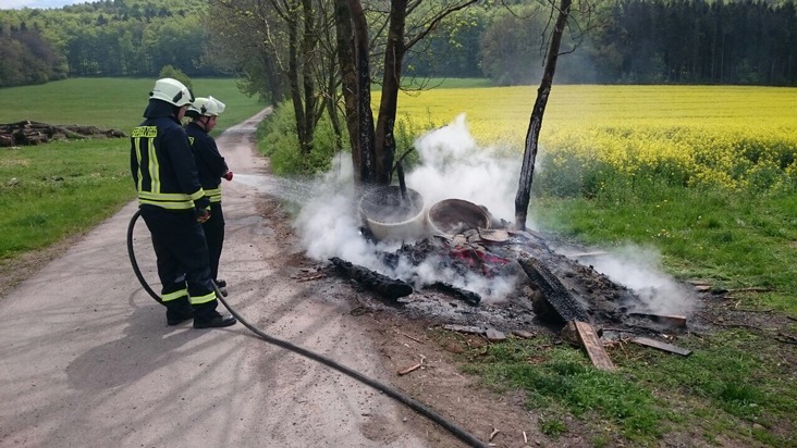 Samstag, 13. Mai 2017, 12:29 Uhr, Am Harzberg. Der Löschzug Lügde wurde durch die Kreisleitstelle der Feuerwehr mit dem Einsatzstichwort "Feuer 1 / brennt Abfall unter Bäumen" alarmiert. Die Einsatzkräfte der Feuerwehr löschten mit dem Schnellangriff den brennenden Unrat ab, weitere Maßnahmen waren nicht notwendig. Neben dem Löschzug Lügde war auch die Polizei an der Einsatzstelle tätig.