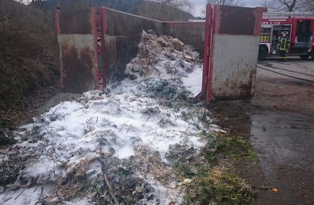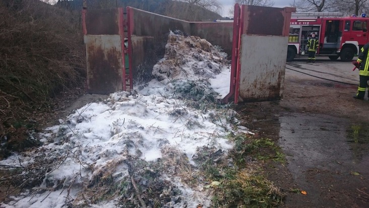 Samstag, 24 Februar 2018,12:09 Uhr, Eschenbrucher Straße. Der Löschzug Lügde wurde durch die Kreisleitstelle der Feuerwehr mit dem Alarmstichwort "Feuer 1: Containerbrand" zur Sammelstelle an der Eschenbrucher Straße alarmiert. Aus noch unbekannten Gründen war ein mit Grünschnitt beladener Container an der Sammelstelle Eschenbrucher Straße "Schwarze Brücke" in Brand geraten. Die Einsatzkräfte löschten den Container unter Atemschutz ab. Im Anschluss wurde der Grünschnitt aus dem Container heraus geholt um einen besseren Löscheffekt zu erzielen. Ein Netzmittel wurde mittels Schaumpistole aufgebracht um auch die tieferen liegenden Glutnester zu erreichen. Ein erneutes Aufflammen wurde hierdurch verhindert. Weitere Maßnahmen waren seitens der Feuerwehr nicht notwendig.