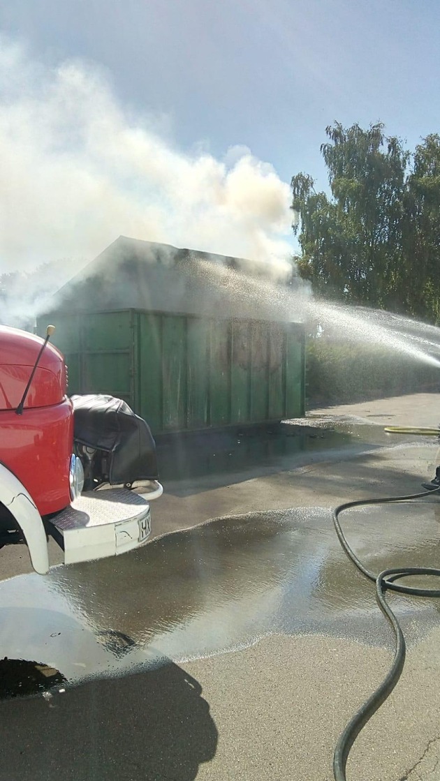 Am 3.7.2018 wurde die Feuerwehren der Stadt Borgentreich zu einem Containerbrand zu Fa Decker GmbH Möbelwerke nach Borgholz gerufen. Die Einheiten aus Borgholz, Natingen, Natzungen und Borgentreich waren gerade auf dem Rückweg von dem Flächenbrand in Großeneder. Da wurden sie von der Leitstelle in Brakel zu einem Brand auf das Gelände dar Fa. Decker gerufen. Auch hier war die Rauchsäule weithin sichtbar. Ein mit Müll gefüllter Container war in Brand geraten. Die Feuerwehr kühlte sofort den Container um dann diesen öffnen zu können. Anschließend wurde das Brandgut im Container gelöscht und mittels eines Einreißhacken wurden dann Glutnester aufgedeckt. Weiterhin wurde dann der Container mit einem Schaumteppich abgedeckt. Zum Glück stand der Container frei auf dem Gelände. Somit war eine Brandausbreitung auf Gebäude der Fa. Decker nicht gegeben. Die Ursache des Feuers ist unklar. Die Feuerwehr Borgentreich war mit 38 Einsatzkräften an der Einsatzstelle.