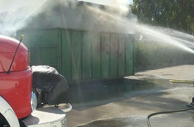 FW Borgentreich: Containerbrand Fa Holz Decker in Borgholz.