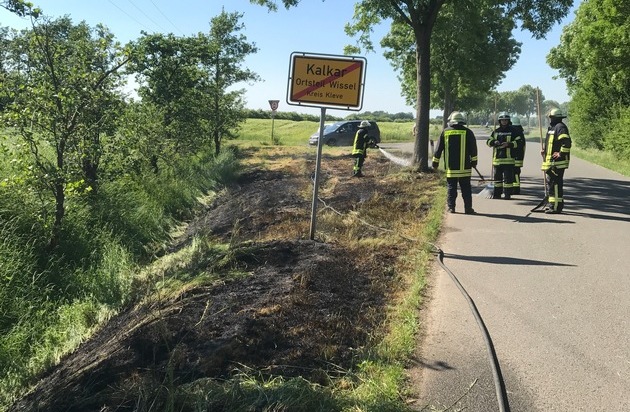 Die derzeitige Trockenheit dürfte dazu beigetragen haben, dass sich am Samstagnachmittag um 16:53 Uhr ein Brand auf mehreren Quadratmetern Wiese an der Emmericher Straße ausbreiten konnte. Die Löschgruppen aus Grieth und Wissel waren im Einsatz und hatten das Feuer schnell unter Kontrolle. Eine Gefahr für Menschen und Gebäude bestand nicht. Die Feuerwehr bittet, insbesondere bei dem trockenen Wetter keine brennenden Zigaretten achtlos wegzuwerfen.