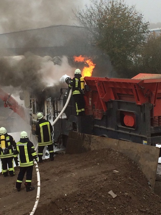 Feuerwehr Kalkar: Brand einer Steinbrechermaschine