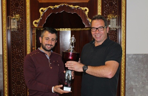 Am 29.08.2015, ab 10.00 Uhr, findet im Gevelsberger Stadion Stefansbachtal das Fußballturnier des "Arbeitskreis Polizei und Muslime EN" statt. Teilnehmer sind die DITIB Moscheevereine der Städte Wetter, Gevelsberg, Hattingen und Schwelm. Komplettiert wird das Teilnehmerfeld durch Mannschaften der AVU, der Freien Evangelischen Gemeinde Ennepetal sowie einer Mannschaft des Arbeitskreises. Das alle zwei Jahre organisierte Fußballturnier findet immer großen Anklang. Titelverteidiger ist in diesem Jahr der Moscheeverein aus Gevelsberg. Aus diesem Grund findet das Turnier auch im Stefansbachtal statt. Der Vorstandsvorsitzende des Moscheevereins Gevelsberg, Herr Demirci, hat mit seinen Mitgliedern bislang sehr viel unternommen, um die Veranstaltung erneut erfolgreich zu gestalten. Während der Veranstaltung sorgen Mitglieder des ansässigen Moscheevereins mit typisch türkischen Speisen für das leibliche Wohl der Besucher. Der Arbeitskreis besteht aus Vertretern der vier DITIB Moscheevereine der Städte Gevelsberg, Schwelm, Wetter und Hattingen, einem Vertreter der evangelischen Kirche sowie Polizeibeamten des Ennepe-Ruhr-Kreises. Darüber hinaus existiert der Frauenarbeitskreis "Polizei und Muslima", welcher sich mit den gleichen Themen und Problematiken befasst. Leiter des Arbeitskreises ist Polizeioberrat Helmut Seelig, Leiter der Direktion Gefahrenabwehr und Einsatz der hiesigen Kreispolizeibehörde. Schirmherr des Arbeitskreises ist Landrat Dr. Arnim Brux, der auch in diesem Jahr das Fussballturnier eröffnen wird. Der Arbeitskreis wurde im Jahr 2008 gegründet, um beide Kulturen einander näher zu bringen. Hieraus entstand eine schriftliche Kooperationsvereinbarung, sich gegenseitig in Sicherheitsbelangen zu unterstützen. Über die Zeit wurde gegenseitiges Vertrauen aufgebaut und es konnten viele Themen offen diskutiert und Probleme gelöst werden. In regelmäßigen Sitzungen werden Themen wie Kriminalprävention, Opferschutz und ordnungsbehördlich relevante Sachverhalte besprochen und diskutiert. Im Jahr 2011 gewann der Arbeitskreis den "Landespreis für Innere Sicherheit". In einer Feierstunde wurde der Preis vom Minister für Inneres und Kommunales, Ralf Jäger, in Düsseldorf übergeben. Bild v.l.n.r.: Ahmet Akpinar (Moscheeverein Gevelsberg), Kriminalhauptkommissar Sven Flügge (KMI - Kontaktbeamter Muslimischer Institutionen