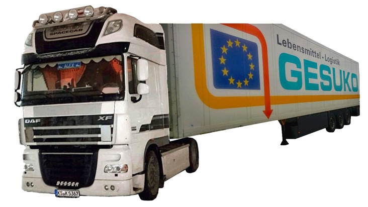 Die Täter müssen die Sattelzugmaschine der Marke DAF mit dem Kennzeichen KS-K5367 (siehe Fotomontage) anschließend weiter benutzt haben. In der Nacht zum 21.08.2017 ging ihnen dann aber offenbar der Sprit aus, denn sie ließen den Lastwagen mit leerem Tank, offen und ohne Kennzeichen mitten auf der Kreuzung Grundschötteler Straße / Oberwengerner Straße in Wetter Volmarstein stehen. Der Lastwagen fiel um 02:35 Uhr dort auf. Aufgrund der noch bestehenden Restwärme des Motors konnte der Lkw noch nicht allzu lange dort gestanden haben. Die Fahndung nach dem Fahrzeugführer blieb erfolglos. Der Fundort der Sattelzugmaschine liegt mehr als 100 km weit entfernt vom Abstellort des Kühlaufliegers und über 230 Kilometer weit entfernt vom Ort des Diebstahls. Hier interessiert sich die Kriminalpolizei Marburg für Zeugen, die den Lastwagen generell gesehen haben oder sogar jene, die das "Abstellen" des Lastwagens mit verfolgt haben.