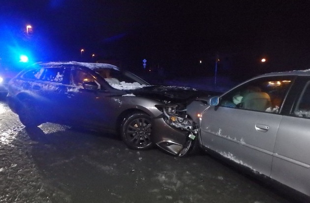 Am 17.01.2018, gegen 06:00 Uhr, kam es beim Abbiegen eines 65-jährigen Gevelsbergers mit einem Pkw Mazda von der Gevelsberger Straße auf die Straße Stefansbecke zu einem Zusammenstoß mit einem entgegenkommenden Pkw Audi eines 64-jährigen Mannes aus Heiligenhaus. Bei dem Zusammenstoß erlitten beide Fahrer leichte Verletzungen. Sie wurden mit Rettungswagen in ein nahe gelegenes Krankenhaus gebracht.