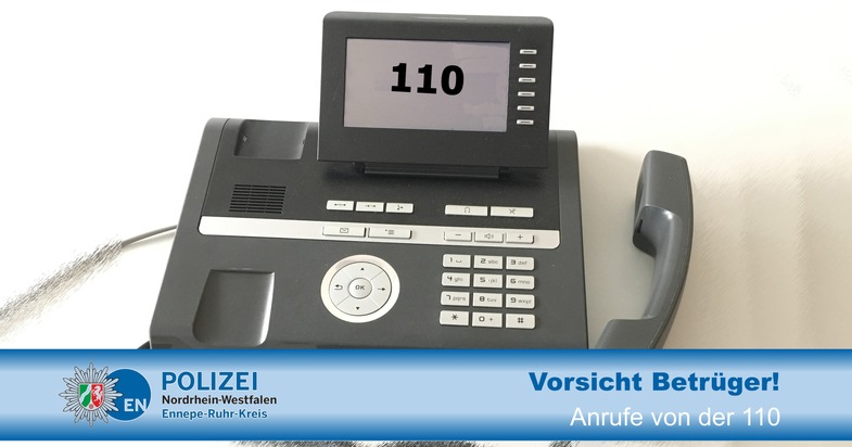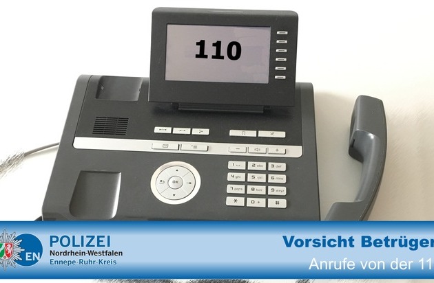 Erneut erhielten Personen aus dem Ennepe-Ruhr-Kreis einen Anruf, bei dem im Telefondisplay die Nummer 110 angezeigt wurde. Der Anrufer gab sich als Polizeibeamter aus und fragte nach den Vermögensverhältnissen. Er bot an einen Kollegen zu schicken, der vorhandene Wertsachen sicherstellen würde, um sie vor Diebstahl zu schützen. Die Display-Anzeige bestärkte die Angerufenen in ihrem Empfinden, es müsse sich bei dem Anrufer um jemanden von der Polizei handeln. In mindestens einem Fall übergab ein Geschädigter kurze Zeit darauf einen größeren Geldbetrag an eine fremde Person, die an seiner Haustür erschien und sich als Polizeibeamter ausgab. Bitte beachten Sie dringend folgendes: Wenn jemand Sie am Telefon mit Namen anspricht und Ihre Adresse nennt, ist dies kein Hinweis darauf, dass der Anrufer besondere Kenntnisse hat - im Regelfall findet jeder diese Angaben im örtlichen Telefonbuch. Bewahren Sie keine Wertsachen ungesichert zu Hause auf! Machen Sie niemals Angaben zu Ihren Vermögensverhältnissen, weder an der Haustür noch am Telefon! Die Polizei wird niemals jemanden zu Ihnen schicken, um Ihre Wertsachen sicherzustellen! Sollten Sie einen Anruf erhalten, bei dem sich jemand als Polizeibeamter ausgibt, ziehen Sie eine Vertrauensperson hinzu und informieren Sie die Polizei.