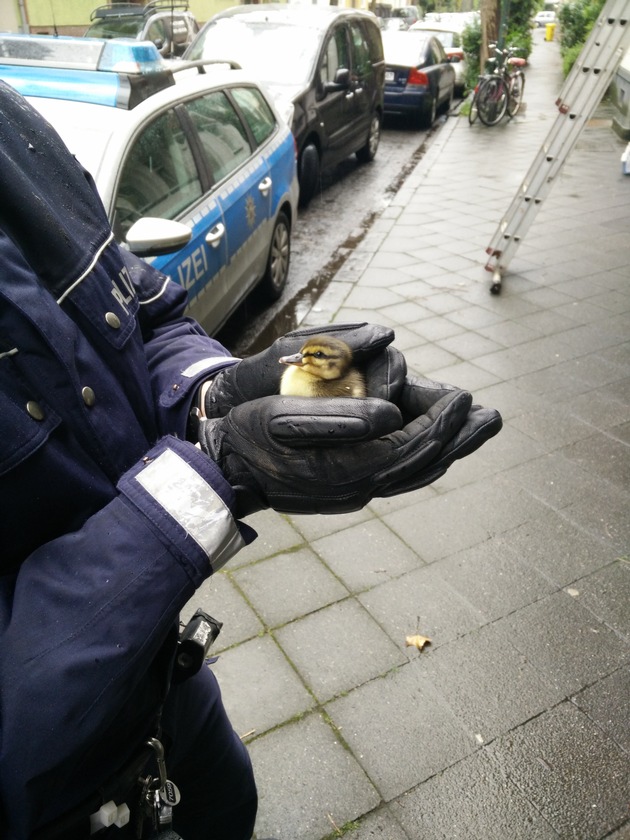 POL-D: Eller - Aus dem Nest gehüpft - Polizisten retten Entenküken - Tierrettung im Einsatz