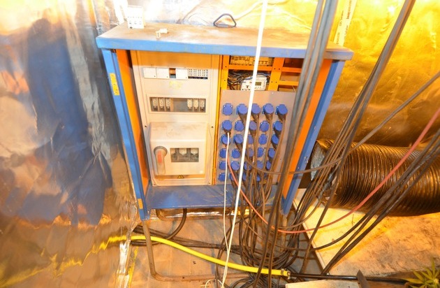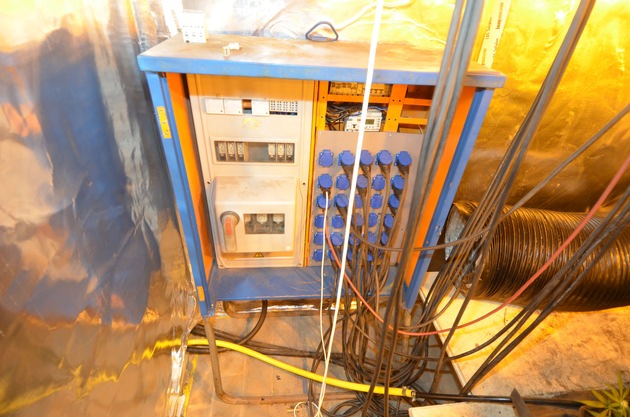 Mitten in Düseldorf-Derendorf, in einem leer stehenden Gewerbeobjekt in einem Hinterhof an der Rather Straße, hoben die Spezialisten des Düsseldorfer Drogenkommissariats heute Morgen eine riesige Cannabisplantage aus. Wer hinter der Plantage steckt, ist derzeit noch unklar. Personen wurden in dem Gebäude oder im Umfeld nicht angetroffen. Die Spurensicherung der KTU (Kriminaltechnische Untersuchung) und die Arbeit der Kriminalpolizei dauern derzeit noch an. Der Notfalldienst der Stadtwerke ist wegen der umfangreichen illegalen Elektroinstallationen ebenfalls den ganzen Tag im Einsatz.