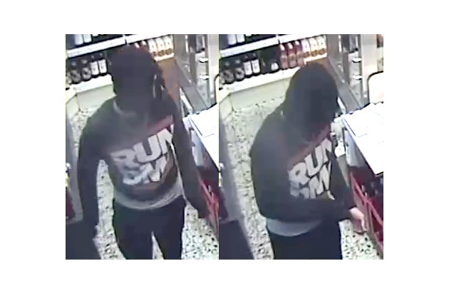 20 - 25 Jahre alt, etwa 1,75 Meter groß, maskiert mit einer Sturmhaube, bekleidet mit einem markanten Pullover mit der Aufschrift "Run DMC". Er trug eine auffällige Kette um den Hals.