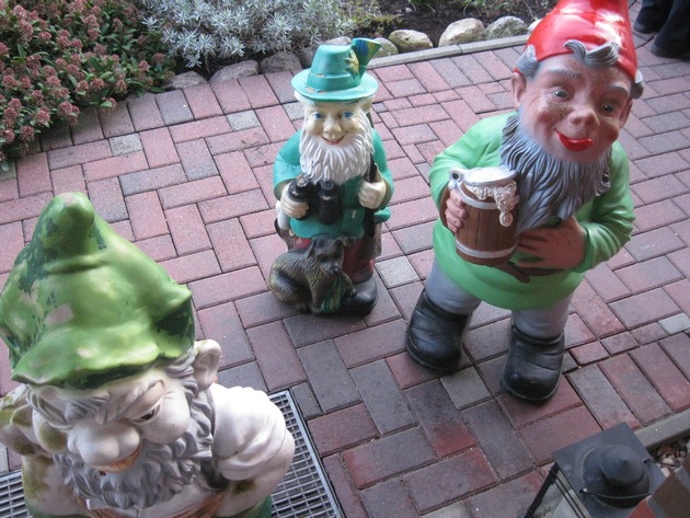 Ein kurioser Fall beschäftigt die Polizei in Bad Segeberg. In einem Vorgarten in der Stauffenbergstraße wurde von den dortigen Bewohnern am heutigen Morgen (14.04.2015), gegen 06:30 Uhr, eine ungewöhnliche Entdeckung gemacht. In ihrem Vorgarten und vor der Haustür standen plötzlich, wie von Zauberhand, unterschiedlichste Gartenzwerge in einer Größe von bis zu 70 cm. Die Märchengestalten dürften in einer Nacht- und Nebelaktion von bislang Unbekannten in dem Garten positioniert worden sein. Die Polizei bittet Zeugen, die Hinweise zu dem Vorfall und der Herkunft der Waldbewohner geben können, sich unter 04551-8840 zu melden. Fotos können im Anhang hochgeladen werden.