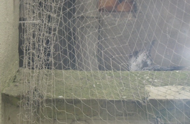 Mit dem Schutz vor Tauben beschäftigen sich auch Fachfirmen. Sogenannte Nagelbretter auf Fensterbänken sind üblich und häufig gewähltes Mittel. Netze könnten grundsätzlich auch helfen. Dafür müssten diese aber sehr engmaschig und das Garn der Netze fest sein, so dass ein Verfangen von Vögeln, auch Kleineren, ausgeschlossen ist (Obstbäume werden ebenfalls mit engmaschigem Netz geschützt). Zudem müssen sie durch eine starke Färbung (z.B. grün oder warnfarben) für die Vögel erkennbar sein. Es dürfen keine Spalten entstehen, durch die die Tiere hindurch schlüpfen können. In diesem Fall hatte der Verantwortliche ein weißes, nahezu durchsichtiges, großmaschiges, sehr feines Netz benutzt und nicht dafür gesorgt, dass keine Spalten entstehen. Er wird aufgefordert, das Netz zu entfernen, bzw. es richtig zu machen.