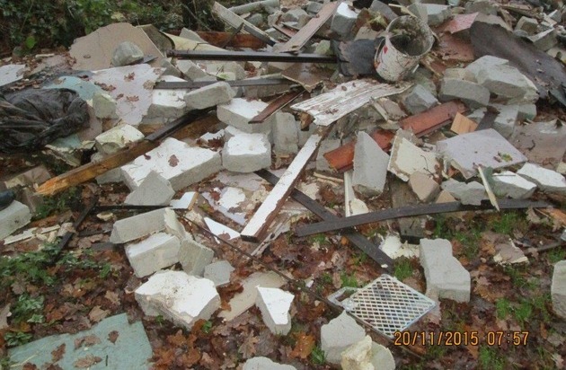 Heute Morgen nahmen die Umweltermittler des Polizei-Autobahn-und Bezirksrevieres Pinneberg eine Strafanzeige wegen unerlaubtem Umgang mit Abfall auf und brauchen nun dringend Zeugen, die Hinweise geben können. Insbesondere wird nach einem gläsernen Kronleuchter gefragt, der sich mitten in dem etwa fünf Kubikmeter großen Müllhaufen aus Bauschutt, Wellzementplatten und Dämmwolle befand.