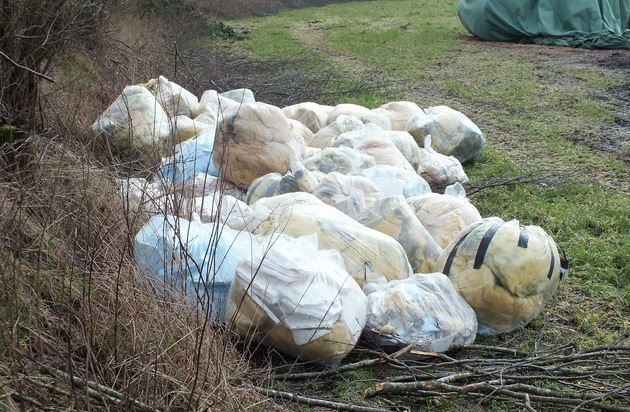 In Struvenhütten fanden die Umweltermittler des Polizei- Autobahn und Bezirksreviers Bad Segeberg südlich der Sievershüttener Straße insgesamt 36 Plastiksäcke mit Baustoffresten. Neben einer Unmenge an Dämmwolle, kleineren Anteilen an Styropor und Tapetenresten entsorgten die Umweltsünder ebenfalls vier Kompletträder.